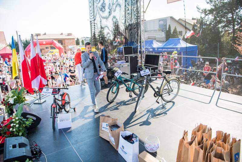 I rozpoczął się biało-czerwony rajd rowerowy, prowadzący ulicami Woli Rzędzińskiej i Jodłówki-Wałek, szlakiem Armii Krajowej. Ponad 500 osobowa społeczność, rodziny z dziećmi, młodzież, seniorzy – wszyscy z biało-czerwoną chorągiewką i kotylionem wyruszyli, by wspólnie świętować, by przekazywać wartości patriotyczne kolejnym pokoleniom. Co ważne, w rajdzie nie liczył się czas, nie było ważne, kto pierwszy przekroczy linię mety, lecz rodzinna, sąsiedzka atmosfera i wspólna sprawa – oddanie hołdu pamięci tym wszystkim, którzy przelali krew za wolność Ojczyzny. Wszyscy uczestnicy otrzymali także biało-czerwone smycze ze specjalnym numerkiem biorącym udział w losowaniu nagród. A do wygrania były nie tylko gadżety rowerowe, rowery od wójta gminy Tarnów, lecz także wiele innych cennych nagród ufundowanych przez poseł Annę Pieczarkę, przewodniczącą rady Wiesławę Miterę, radnych Andrzeja Prendotę i Mieczysława Nytko. Następnie ochotnicy mogli wziąć udział w kolejnym wyścigu – tym razem żółwi, czyli wygrywał ten, kto najwolniej dojechał do mety. Na wszystkich uczestników, tradycyjnie już, czekał poczęstunek gminnym bigosem.