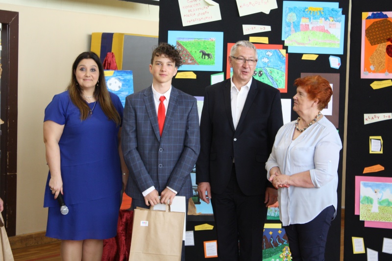 Następnie miało miejsce podsumowanie całego konkursu, zarówno części recytatorskiej, jak i plastycznej. Specjalne podziękowania dla opiekunów poszczególnych uczestników złożyli zastępca wójta Sławomir Wojtasik i dyrekcja szkoły - dyrektor Anna Filar oraz wicedyrektor Bernadetta Maguda. Wszystkim uczestnikom wręczyli także dyplomy oraz upominki przygotowane przez uczniów miejscowej szkoły, nagrody zaś otrzymali zwycięzcy poszczególnych kategorii. Wydarzenie zakończył symboliczny występ uczennicy – Veroniki Komarovych z Ukrainy, laureatki i zdobywczyni II miejsca w Międzynarodowym Konkursie Piosenki w Turcji. Zaśpiewała ona dla wszystkich pieśni w swoim ojczystym języku.