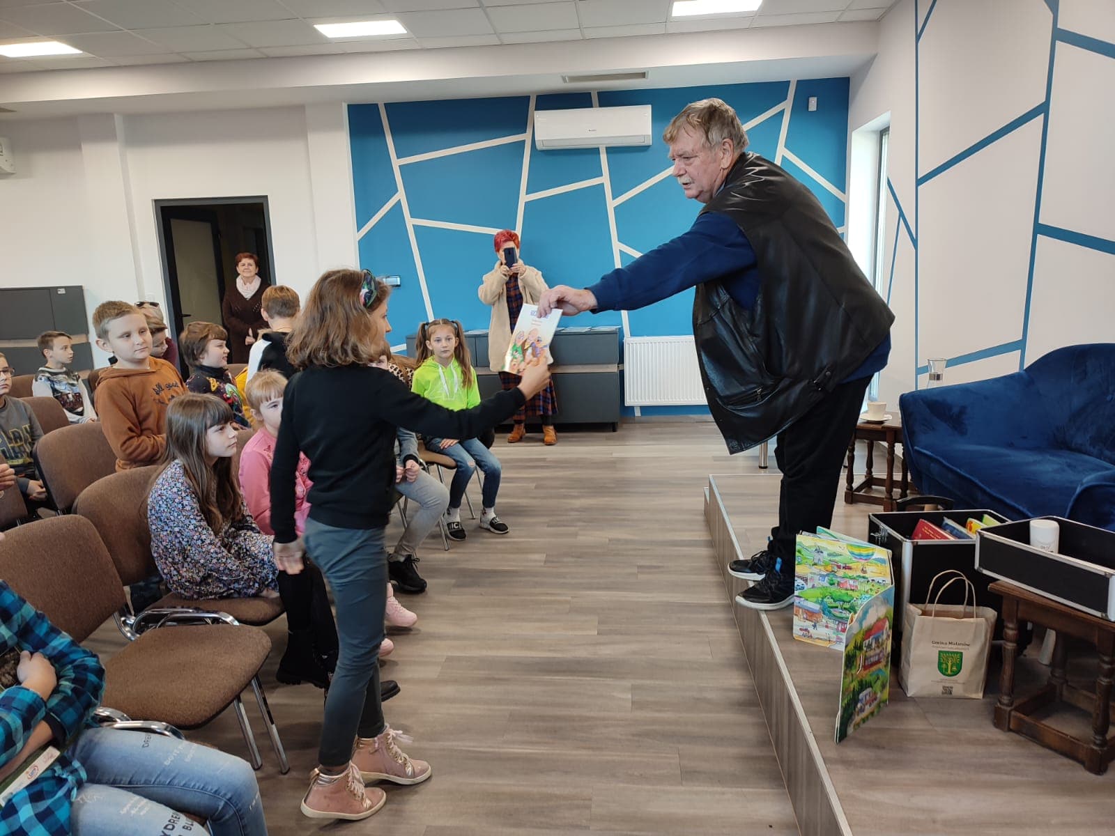 Autor podczas prowadzonych spotkań opowiadał o pracy pisarskiej, o poszczególnych etapach wydawania książek, o seriach, które wyszły spod jego pióra. Nie zabrakło zabawnych konkursów z nagrodami, rymowanek na poczekaniu czy nagród – autorskich książek.