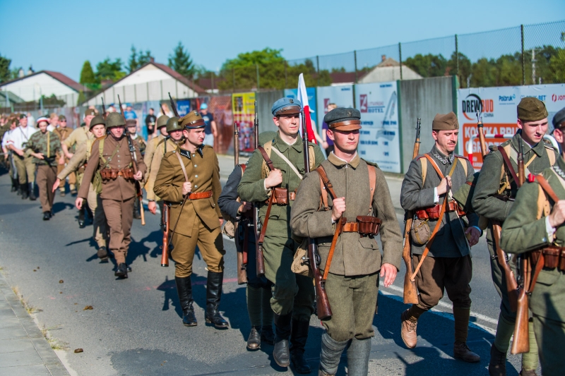 Wydarzenie rozpoczęło się od widowiskowej defilady ulicami Woli Rzędzińskiej z udziałem grup rekonstrukcji historycznej. Rekonstruktorzy odtworzyli Wojsko Polskie od średniowiecza do współczesności. Poprowadziła ją Orkiestra Dęta OSP, za którą znaleźli się przedwojenni premierzy: Wincenty Witos, Ignacy Paderewski i Roman Dmowski w towarzystwie przedstawicielek Koła Gospodyń Wiejskich z Woli Rzędzińskiej. Następnie za marszałkiem Józefem Piłsudskim i generałem Tadeuszem Rozwadowskim podążali: adiunkt – ułan z 1. pułku ułanów wraz z ułanami Władysława Beliny-Prażmowskiego, kozacy zwani "Petlurowcami". W dalszej kolejności: 5. Pułk Strzelców Konnych, pojazdy pancerno-motorowe z międzywojnia, samochód terenowy Pzinż 303, który ciągnął replikę karabinu maszynowego NKM wz. 1938. Zaprezentowane zostało też dawne wyposażenie armii, w tym tankietka TKS i wojskowe samochody terenowe. W pochodzie udział wzięli także: woje z czasów Mieszka I, szlachta pospolitego ruszenia, legioniści, żołnierze Bitwy Warszawskiej. Defiladę uzupełnili żołnierze 16. Pułku Piechoty oraz Wojska Obrony Terytorialnej.