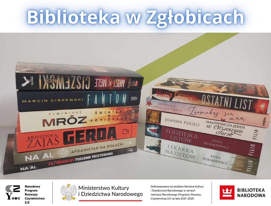Nasze gminne biblioteki – w Zgłobicach, Woli Rzędzińskiej oraz Tarnowcu wzbogaciły się o wiele nowości wydawniczych zakupionych dzięki dotacji pozyskanej przez Centrum Kultury i Bibliotek Gminy Tarnów z Ministerstwa Kultury w ramach Narodowego Programu Rozwoju Czytelnictwa 2.0 na lata 2021-2025. Kwota dofinansowania wyniosła ponad 15 tysięcy złotych.