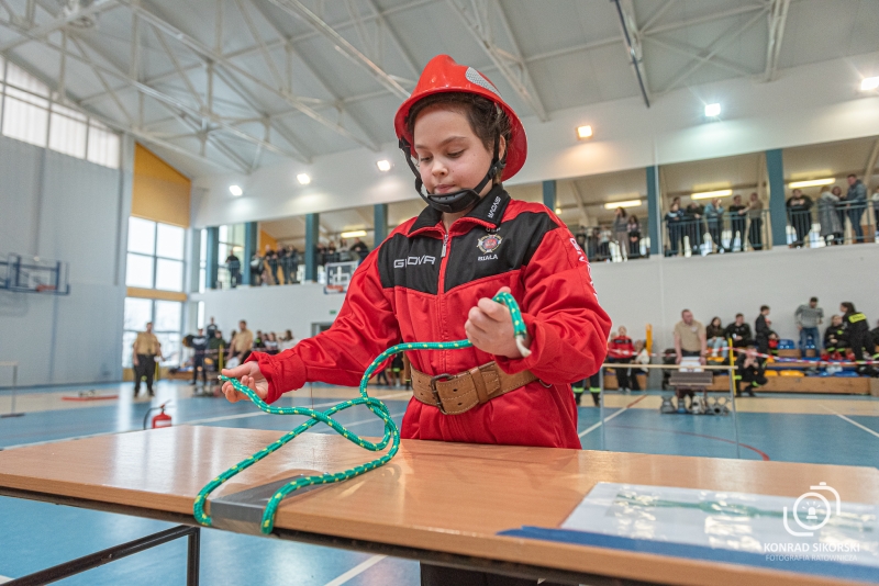 Młodzi rywalizowali na torze przeszkód, gdzie musieli sprawdzić się m.in. w przenoszeniu gaśnicy, wiązaniu węzłów, biegu pod płotkiem czy łączeniu węży strażackich. Nad prawidłowością przebiegu zawodów czuwało Powiatowe Kolegium Sędziów. – Zawody są formą doskonalenia i sprawdzenia swoich umiejętności zdobywanych podczas zbiórek i ćwiczeń członków Młodzieżowych Drużyn Pożarniczych. Jest to w pewien sposób etap przygotowujący młodzież do wstąpienia w przyszłości w szeregi ochotników. To też forma integracji oraz nauka współzawodnictwa zgodnie z regułami fair-play – mówi prezes Oddziału Gminnego ZOSP RP Katarzyna Biel.