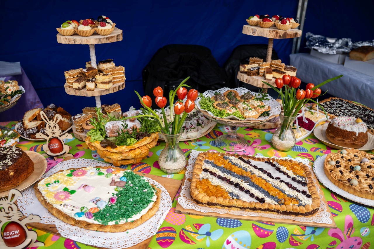 Wyroby kulinarne i rękodzielnicze prezentowały Koła Gospodyń Wiejskich z Radlnej, Koszyc Małych, Koszyc Wielkich, Woli Rzędzińskiej, Zgłobic, Zbylitowskiej Góry, Białej i z Jodłówki – Wałek. Nie brakowało degustacji smakowitości kuchni regionalnej – zarówno wyrobów cukierniczych, jak tych scricte kojarzonych z Wielkanocą. Na stołach dominowały więc tradycyjne żurki, chleby domowej roboty, smalczyki czy wyroby wędliniarskie oraz różnego rodzaju baby, mazurki i inne słodkości. Do ich degustowania nikogo nie trzeba było namawiać.