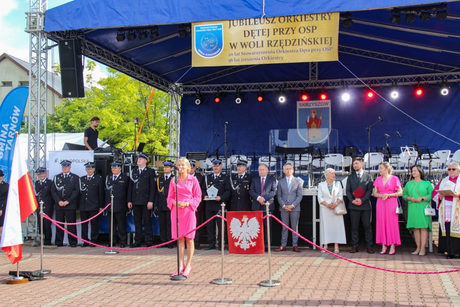 Meldunek o gotowości do rozpoczęcia uroczystości złożył dowódca uroczystości, komendant gminny OSP Daniel Gniewek, a przyjął go wiceprezes Oddziału Wojewódzkiego Związku OSP w Krakowie Andrzej Jarocha. Skład pocztu flagowego stanowili: Mateusz Sobal z OSP w Woli Rzędzińskiej, Sebastian Lisowski z OSP Koszyce Małe i Konrad Skórka z OSP Poręba Radlna. Powitania gości oraz wprowadzenia dokonały: prezes Zarządu Oddziału Gminnego ZOSP RP w Tarnowie Katarzyna Biel i prezes Zarządu Stowarzyszenia Orkiestry Dętej przy OSP w Woli Rzędzińskiej Agnieszka Wrona. Komendanta Miejskiego PSP w Tarnowie reprezentował st. kpt. Mateusz Jurkiewicz, wojewodę małopolskiego – Piotr Łosiński, a marszałka województwa – Krystyna Kolis – Radziszewska.