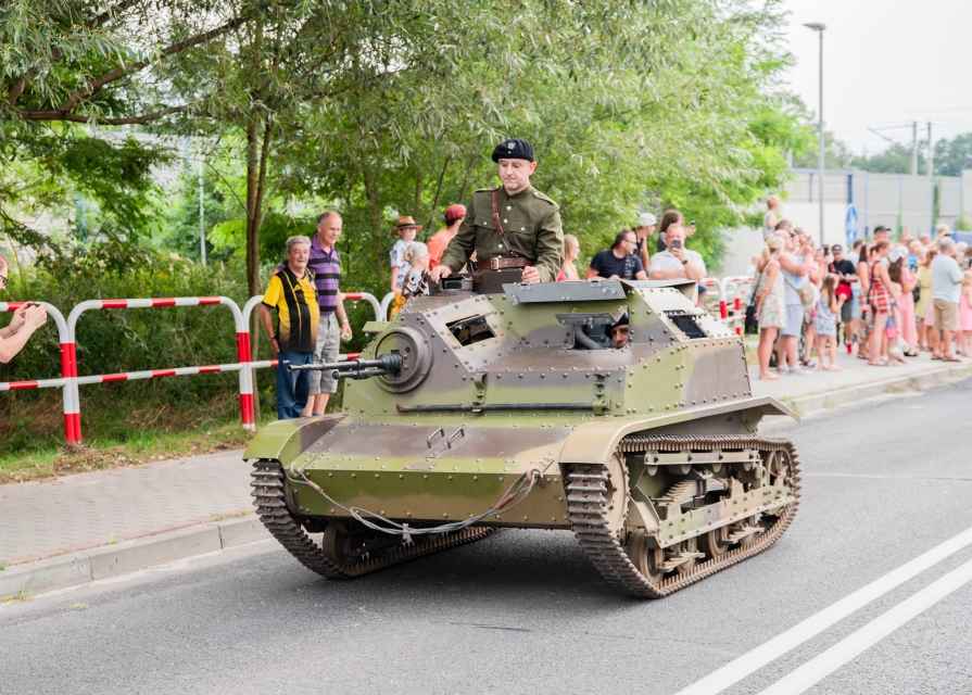 Była tzw. taczanka - resorowany zaprzęg konny z ciężkim karabinem maszynowym, która służyła do transportu broni, amunicji, piechoty i do atakowania wroga bezpośrednio na polu bitwy. Ciężki karabin maszynowy umieszczony z tyłu powozu, zapewniał skuteczny ogień zaporowy na kawalerię, ścigającą wroga po atakach i podczas odwrotów. W defiladzie jechał też samochód UAZ – 469, a na nim rekonstruktorzy w umundurowaniu 1 Samodzielnej Brygady Spadochronowej, której dowódcą był Stanisław Sosabowski. Była też TKS, czyli tankietka - mały czołg (polski mały i szybki czołg z końca lat 20-tych).