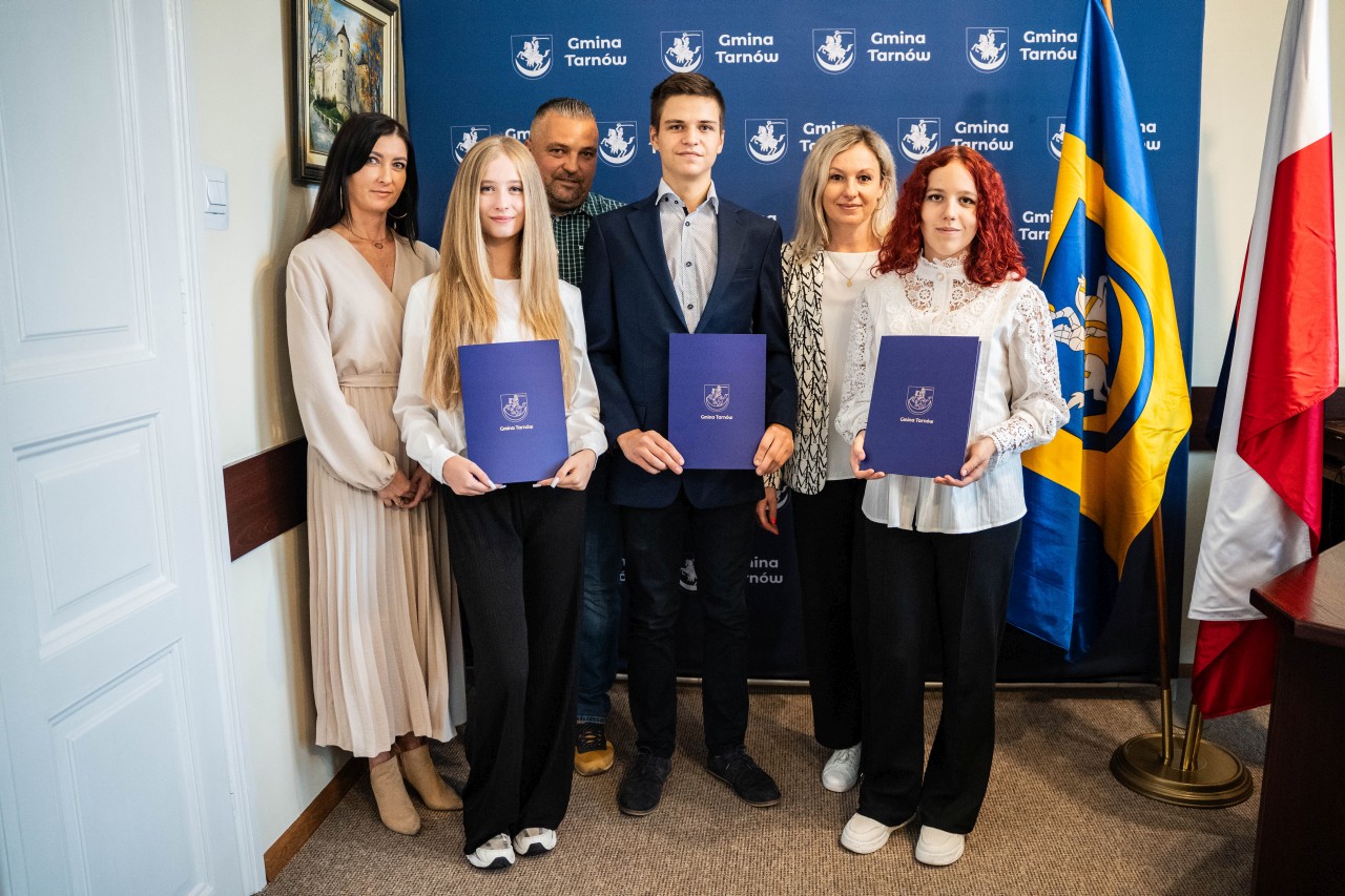 W Urzędzie Gminy Tarnów wójt Grzegorz Kozioł wręczył stypendia finansowe kolejnym wyjątkowym mieszkańcom naszej gminy. -To nasze perełki, najlepsi z najlepszych, którzy osiągają poważne sukcesy. Nie tylko uczą się w szkołach, lecz także poświęcają swój wolny czas na treningi i dodatkową pracę nad własnym rozwojem – doskonalą się w wybranych przez siebie dyscyplinach, czy to artystycznych, sportowych, czy też naukowych. My to doceniamy i nagradzamy – mówi wójt, Grzegorz Kozioł.