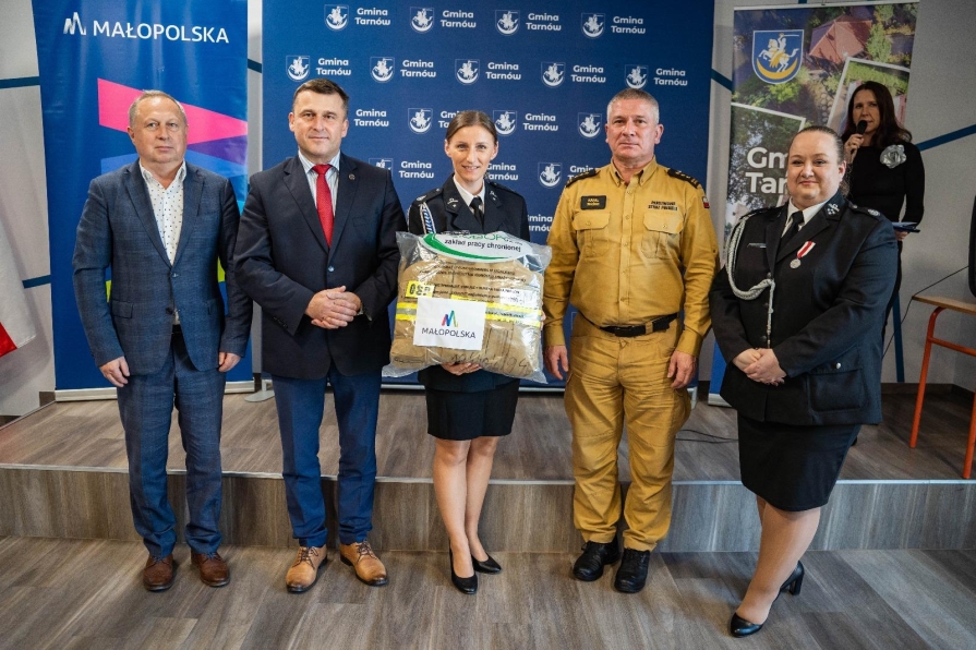Odzież ochronną, która pomoże strzec ochotników podczas szczególnie trudnych akcji, w imieniu marszałka Małopolski, przekazał wiceprzewodniczący Sejmiku Województwa Małopolskiego Wojciech Skruch w asyście wójta Grzegorza Kozioła, szefa PSP w Tarnowie st. bryg. Rafała Waśko i prezes gminnych OSP Katarzyny Biel. Odebrali ją przedstawiciele poszczególnych jednostek – prezesi i naczelnicy oraz strażacy ochotnicy z Jodłówki – Wałek, Koszyc Małych, Koszyc Wielkich, Łękawki, Poręby Radlnej, Woli Rzędzińskiej, Zbylitowskiej Góry i Zgłobic.