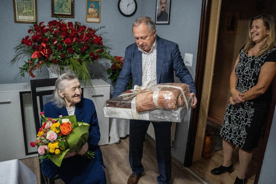 Z tej okazji z kwiatami i upominkiem gościł u niej wójt Grzegorz Kozioł wraz z dyrektor Gminnego Ośrodka Pomocy Społecznej Beatą Witkowską i kierownik Referatu Spraw Społeczno – Administracyjnych Katarzyną Gawle – Starzec. Zgodnie z tradycją, okolicznościowe adresy przekazali ponadto wojewoda małopolski i Premier RP.