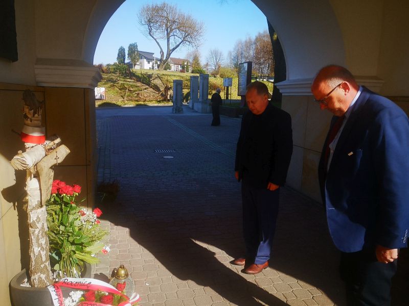 Pod tuchowską tablicą hołd ofiarom katastrofy oddali również Poseł Anna Pieczarka, Proboszcz parafii i Kustosz Sanktuarium o.Bogusław Augustowski, wicestarosta tarnowski Jacek Hudyma.
