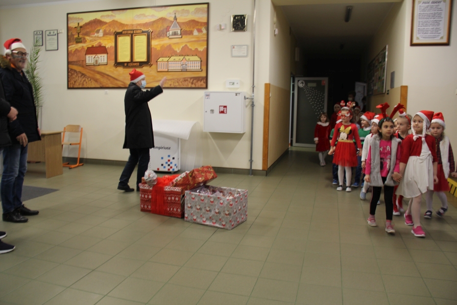 Ekipa Świętego Mikołaja z książeczkami u najmłodszych
