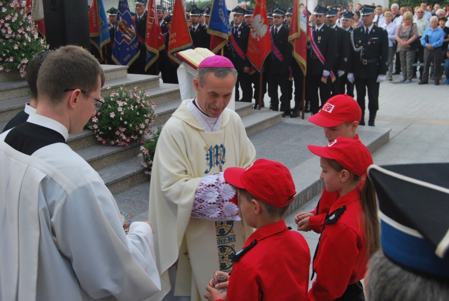 W procesji z darami szli: prezes ZOG ZOSP RP – Henryk Solak, wiceprezes ZOG ZOSP RP Andrzej Muniak, komendant ZOG ZOSP RP Jan Michalik, sekretarz ZOG ZOSP RP Jolanta Kałuża oraz przedstawiciele MDP OSP Koszyce Małe Gabriela Gniewek, Kamil Gniewek i Marek Kudroń.