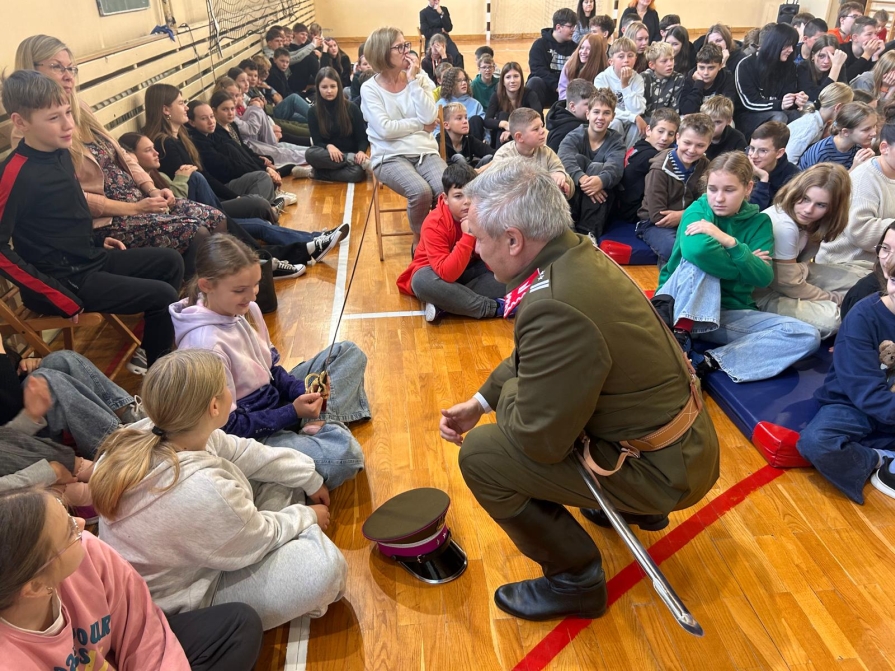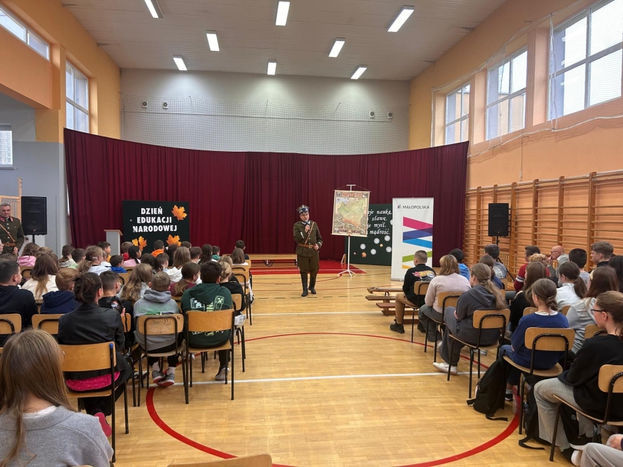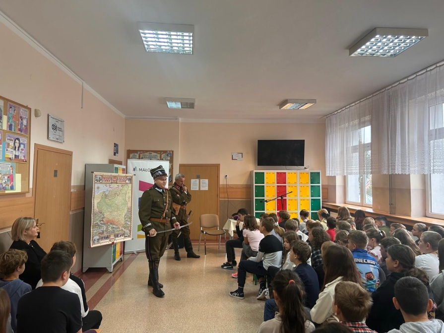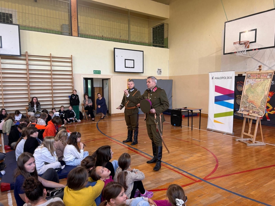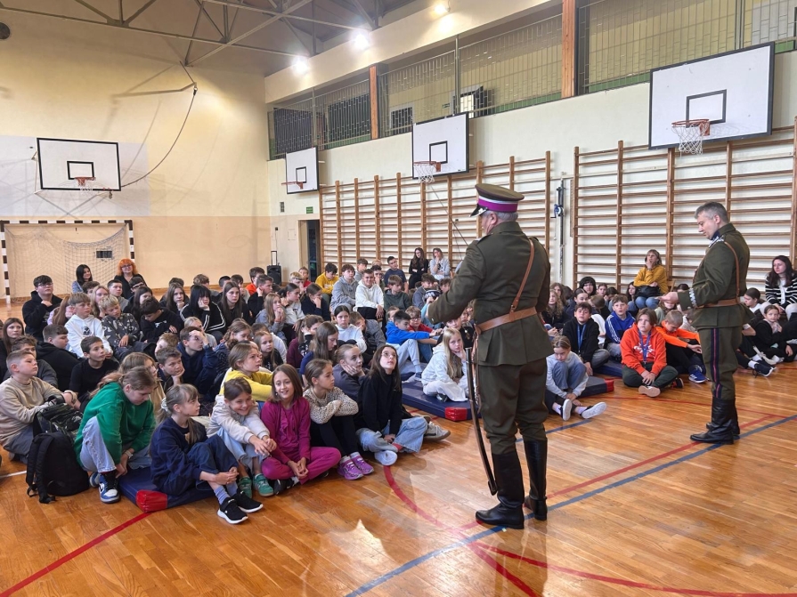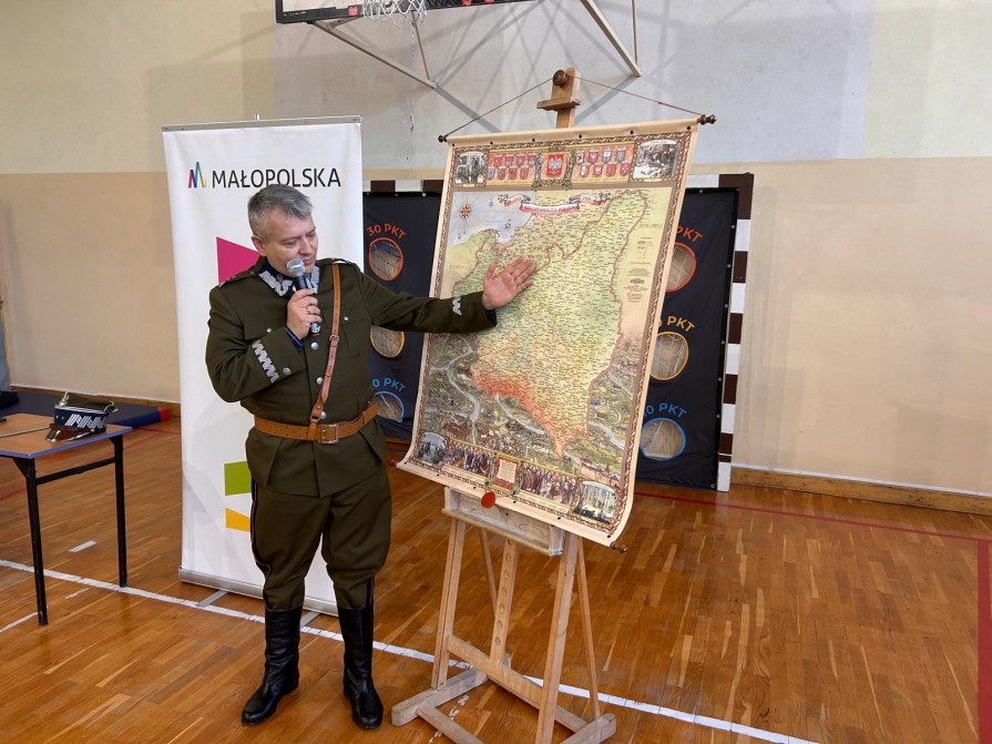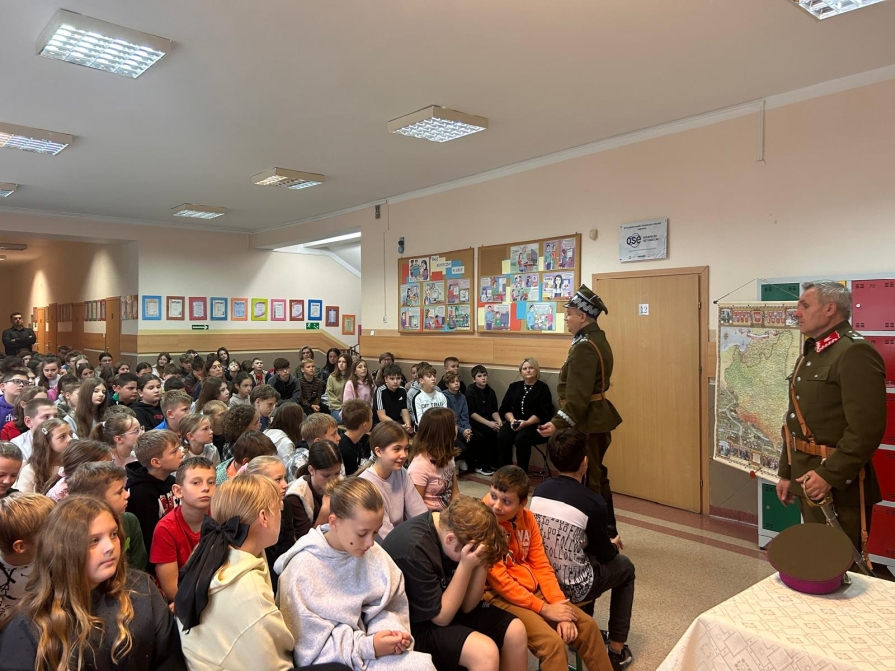 Józef Parys w mundurze gen. Tadeusza Rozwadowskiego przedstawił tło historyczne wydarzeń 1920 roku i przybliżył młodzieży postać głównego sztabowca bitwy warszawskiej i najprawdopodobniej autora genialnego manewru, który uratował niepodległość Polski i Europy.