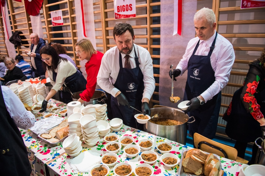 Po części oficjalnej przyszedł czas rodzinne i radosne świętowanie. Był występ Sanktuaryjnej Orkiestry Dętej z Tuchowa, a następnie wspólne śpiewanie pieśni patriotycznych z Chórem CANTE wraz z biało – czerwonymi flagami i śpiewnikami od samorządu. Nie zabrakło poczęstunku dla wszystkich węgierskim gulaszem i bigosem.