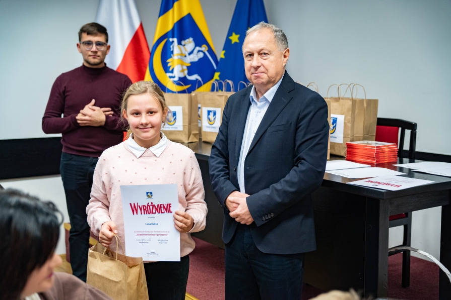 Laureaci otrzymali nowoczesne bezprzewodowe słuchawki nauszne oraz bidony z filtrem wody. Dodatkowo 21 prac zostało wyróżnionych, a ich autorzy nagrodzeni zostali okolicznościowymi upominkami. Pozostali uczestnicy otrzymali dyplomy za udział w konkursie, a także głośniki i bidony. Serdeczne podziękowania trafiły również do nauczycieli i opiekunów, którzy przygotowywali uczniów do konkursu i wspierali ich na każdym etapie pracy.