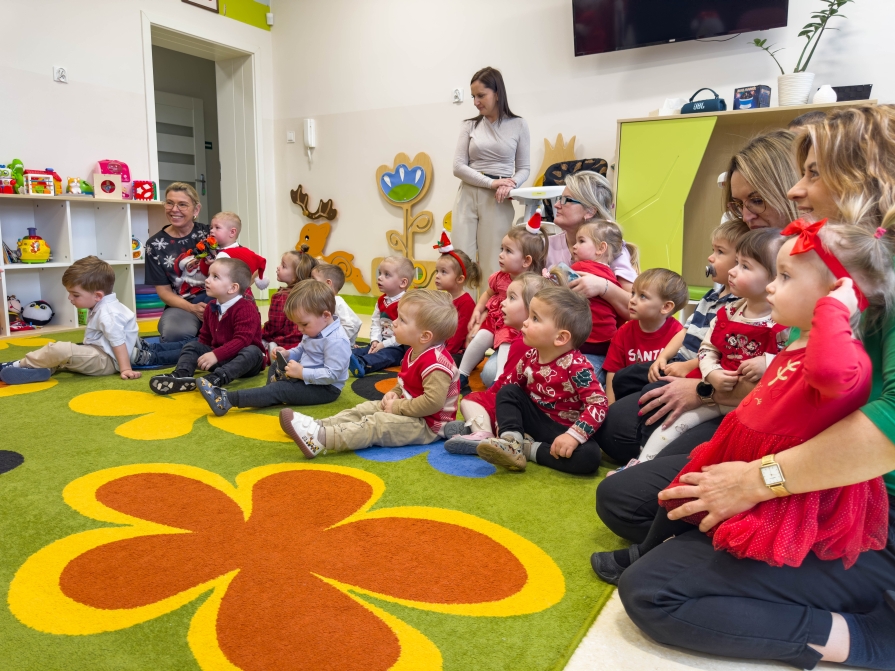 Najmłodsi radośnie witali przybyłych gości i z werwą dla nich występowali. Maluchy radośnie prezentowały świąteczne piosenki, wierszyki czy krótkie przedstawienia.