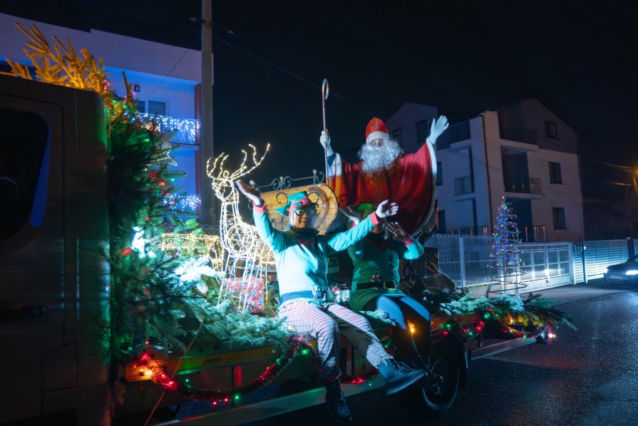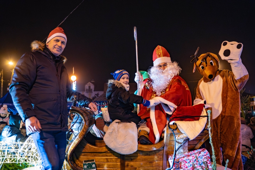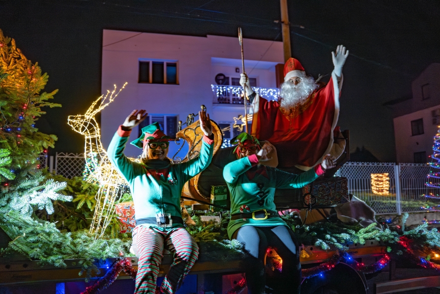 Święty Mikołaj rozdawał wszystkim słodkości, pozował do zdjęć i pozdrawiał zgromadzonych. W centrum Koszyc Wielkich pojawił się w gronie pomocników, m.in. kolorowych elfów.