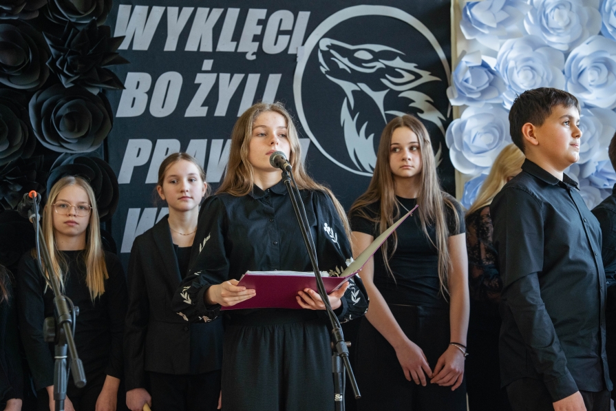 Występy uczniów nawiązywały do losów żołnierzy, walczących w tzw. drugiej konspiracji, o których milczano przez lata. -Dziś natomiast głośno mówimy o dramatycznym położeniu ludzi, którzy do końca, nierzadko aż do śmierci, walczyli o Polskę i przywracamy należną im cześć – przypominał wójt, Grzegorz Kozioł.