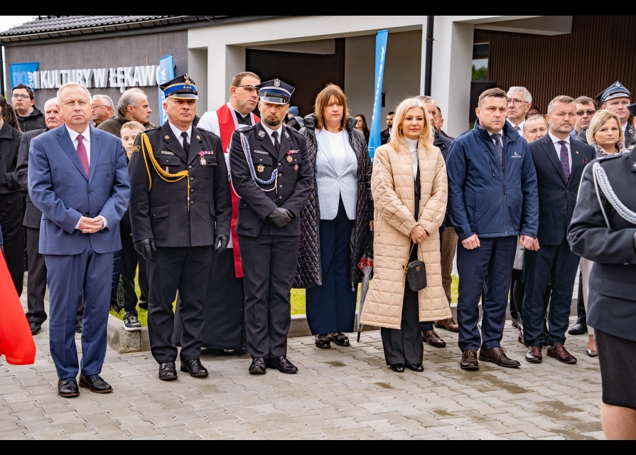 Kolejnym punktem uroczystości było oficjalne otwarcie, a następnie poświęcenie Domu Kultury wraz z remizą OSP w Łękawce. Przecięcia wstęgi dokonali: poseł RP Anna Pieczarka, wójt Grzegorz Kozioł, Elżbieta Chrząszcz z Niepublicznego Zespołu Szkolno – Przedszkolnego w Łękawce, prezes OSP Łękawka Mateusz Cieśla, prezes gminnych jednostek OSP Katarzyna Biel, przewodnicząca Rady Gminy Tarnów Wiesława Mitera, Komendant Miejski PSP w Tarnowie Rafał Waśko, prezes Oddziału Powiatowego ZOSP RP w Tarnowie Łukasz Łach i Małgorzata Fudyma – Grzywa z OSP i KGW w Łękawce. Obiekt poświęcił proboszcz parafii w Łękawce ks. Jan Lorek.