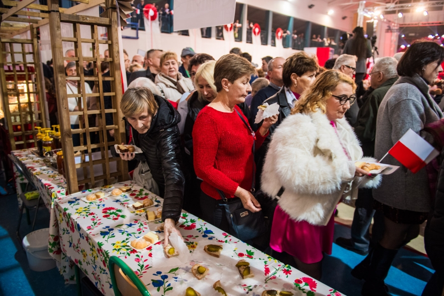 Po części oficjalnej przyszedł czas rodzinne i radosne świętowanie. Był występ Sanktuaryjnej Orkiestry Dętej z Tuchowa, a następnie wspólne śpiewanie pieśni patriotycznych z Chórem CANTE wraz z biało – czerwonymi flagami i śpiewnikami od samorządu. Nie zabrakło poczęstunku dla wszystkich węgierskim gulaszem i bigosem.