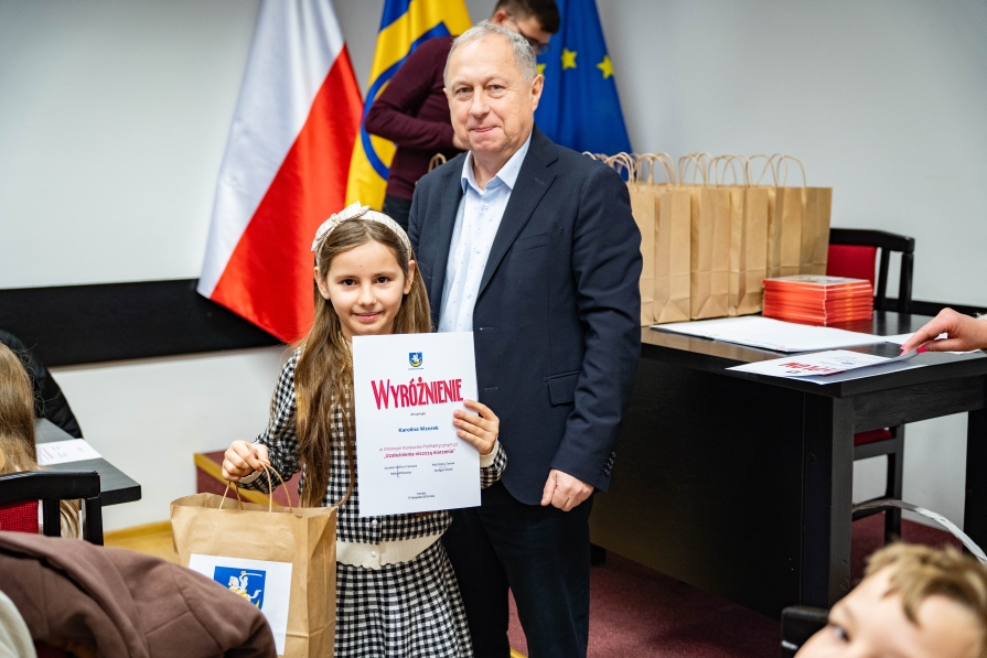 Laureaci otrzymali nowoczesne bezprzewodowe słuchawki nauszne oraz bidony z filtrem wody. Dodatkowo 21 prac zostało wyróżnionych, a ich autorzy nagrodzeni zostali okolicznościowymi upominkami. Pozostali uczestnicy otrzymali dyplomy za udział w konkursie, a także głośniki i bidony. Serdeczne podziękowania trafiły również do nauczycieli i opiekunów, którzy przygotowywali uczniów do konkursu i wspierali ich na każdym etapie pracy.