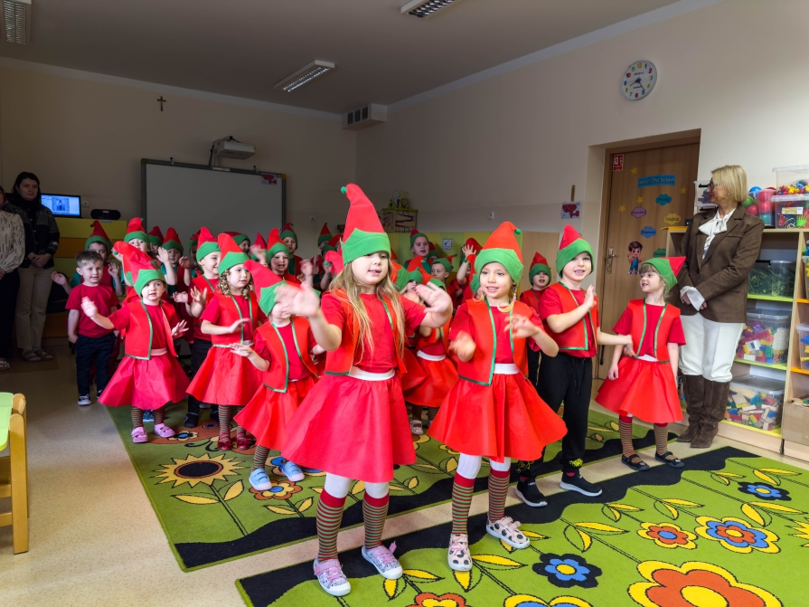 Najmłodsi radośnie witali przybyłych gości i z werwą dla nich występowali. Maluchy radośnie prezentowały świąteczne piosenki, wierszyki czy krótkie przedstawienia.