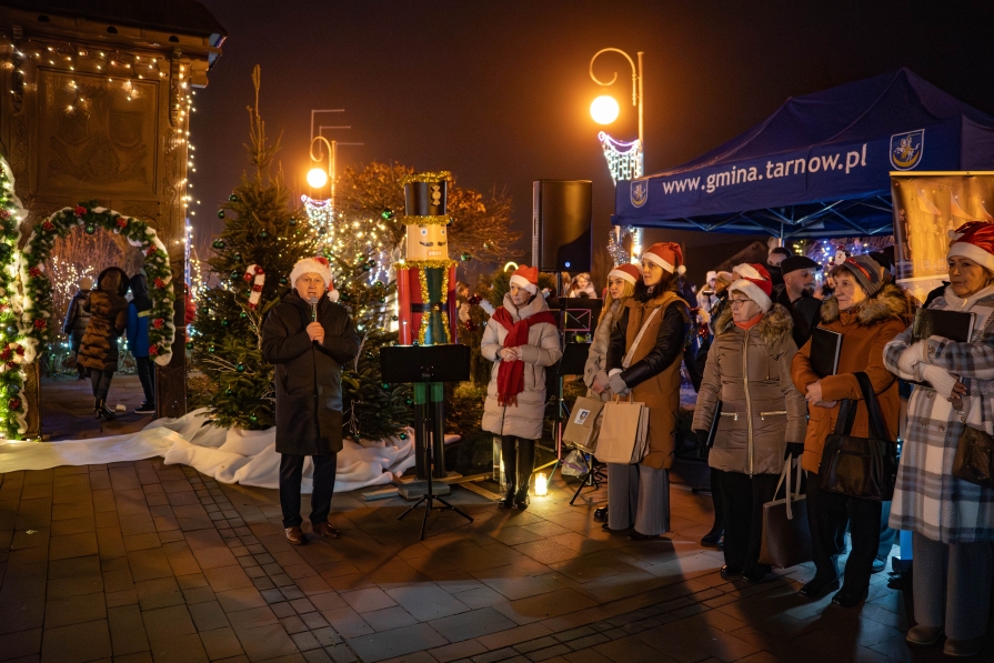 Centrum Woli Rzędzińskiej I mieni się biało – czerwonymi kolorami. W rozświetleniu tego miejsca udział wzięli: wójt Grzegorz Kozioł, przewodnicząca Rady Gminy Tarnów Wiesława Mitera wraz z radnymi - Kamilem Stachem, Andrzejem Prendotą, Marcinem Gałuszką i Ewą Kołton oraz sołtys Katarzyną Tadel i dyrektor Centrum Kultury i Bibliotek Agnieszką Budzik.