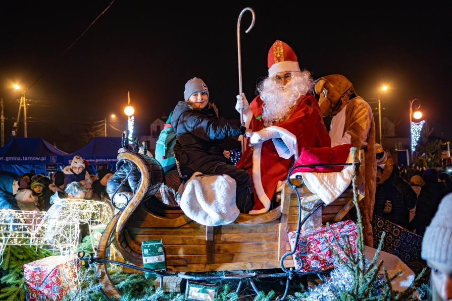 Święty Mikołaj rozdawał wszystkim słodkości, pozował do zdjęć i pozdrawiał zgromadzonych. W centrum Koszyc Wielkich pojawił się w gronie pomocników, m.in. kolorowych elfów.